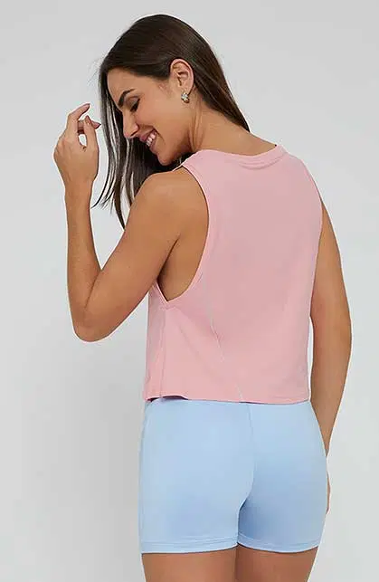 Dica de estilo: combine a Regata Evasê com uma legging de cós alto ou uma bermuda justa, equilibrando o volume da parte de cima e criando um look fitness harmônico e elegante para o dia a dia.