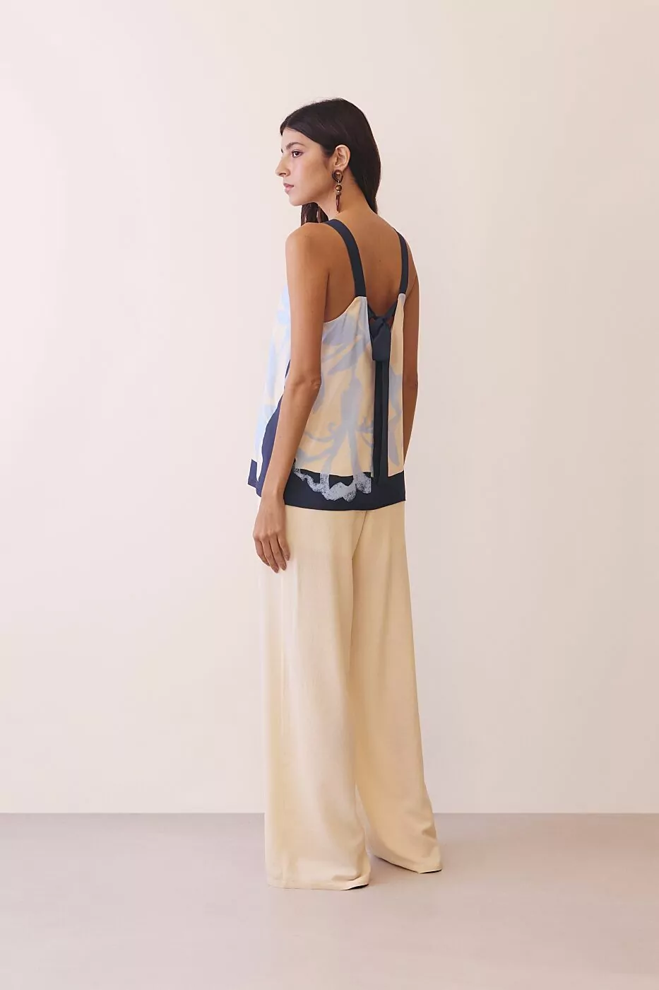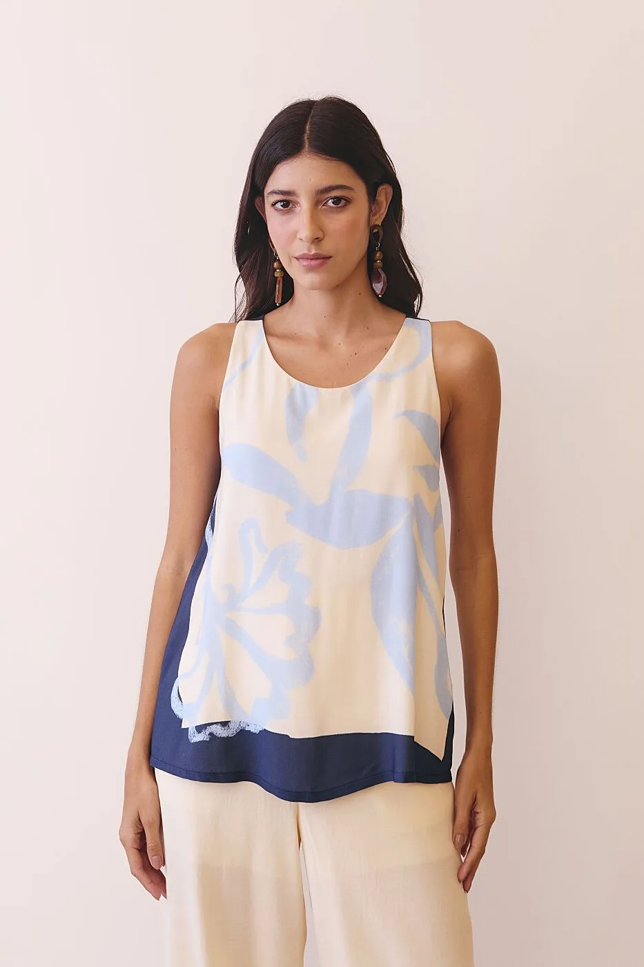 Dica de estilo: use a regata Estampa Lenço com uma calça de linho cru e sandálias de tiras finas para um look leve e elegante. Para um toque moderno, combine com a saia Estampa Lenço e acessórios dourados — o conjunto cria um visual harmônico, refinado e cheio de bossa.