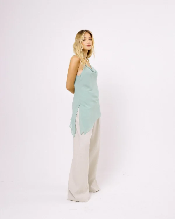 Feita em chiffon leve e fluido, tem caimento soltinho, decote em V suave e alças finas — detalhes que trazem feminilidade e frescor, perfeitos para os dias mais quentes ou para sobreposições elegantes.