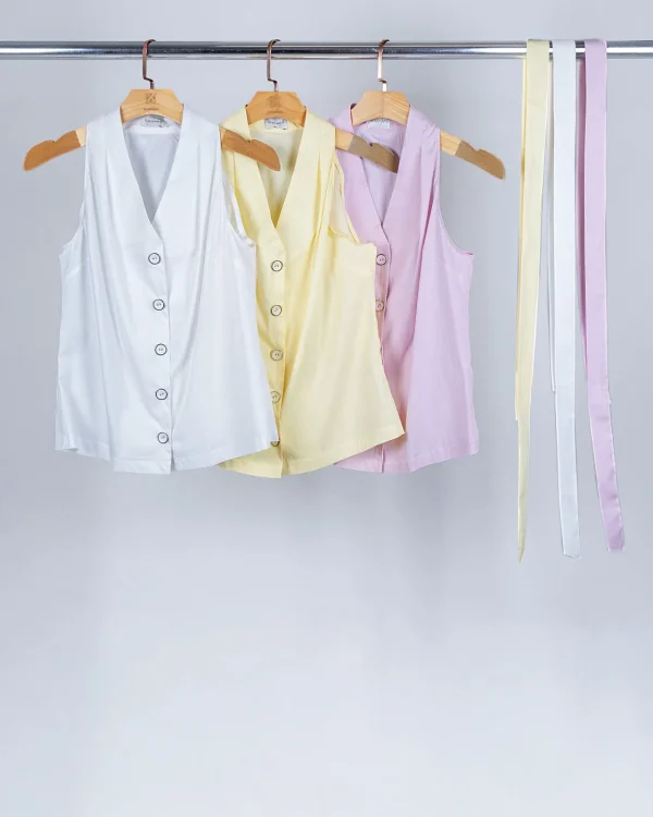 A simplicidade sofisticada que nunca sai de moda. A regata em tricoline traz o frescor do algodão com a modernidade da cava americana, valorizando os ombros de forma delicada. Os botões frontais reforçam o ar atemporal da peça, enquanto a faixa solta para amarração permite marcar a cintura ou criar diferentes amarrações, deixando o look versátil e cheio de personalidade.