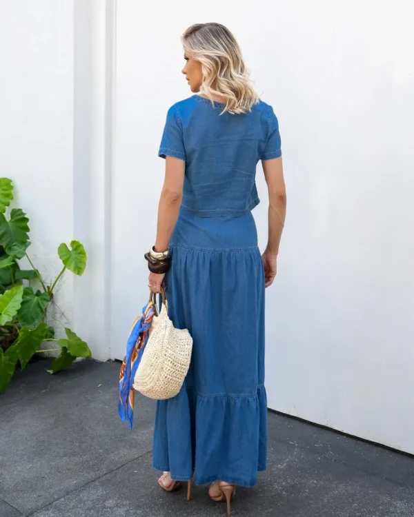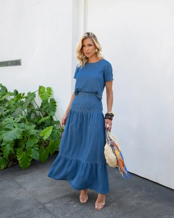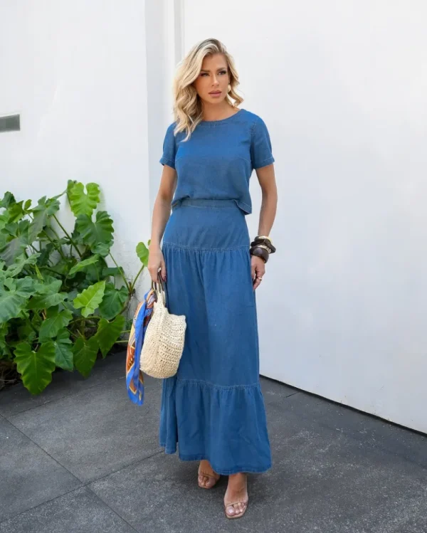 👗 Saia Jeans Leve com Babados – Feminilidade com Toque Despojado