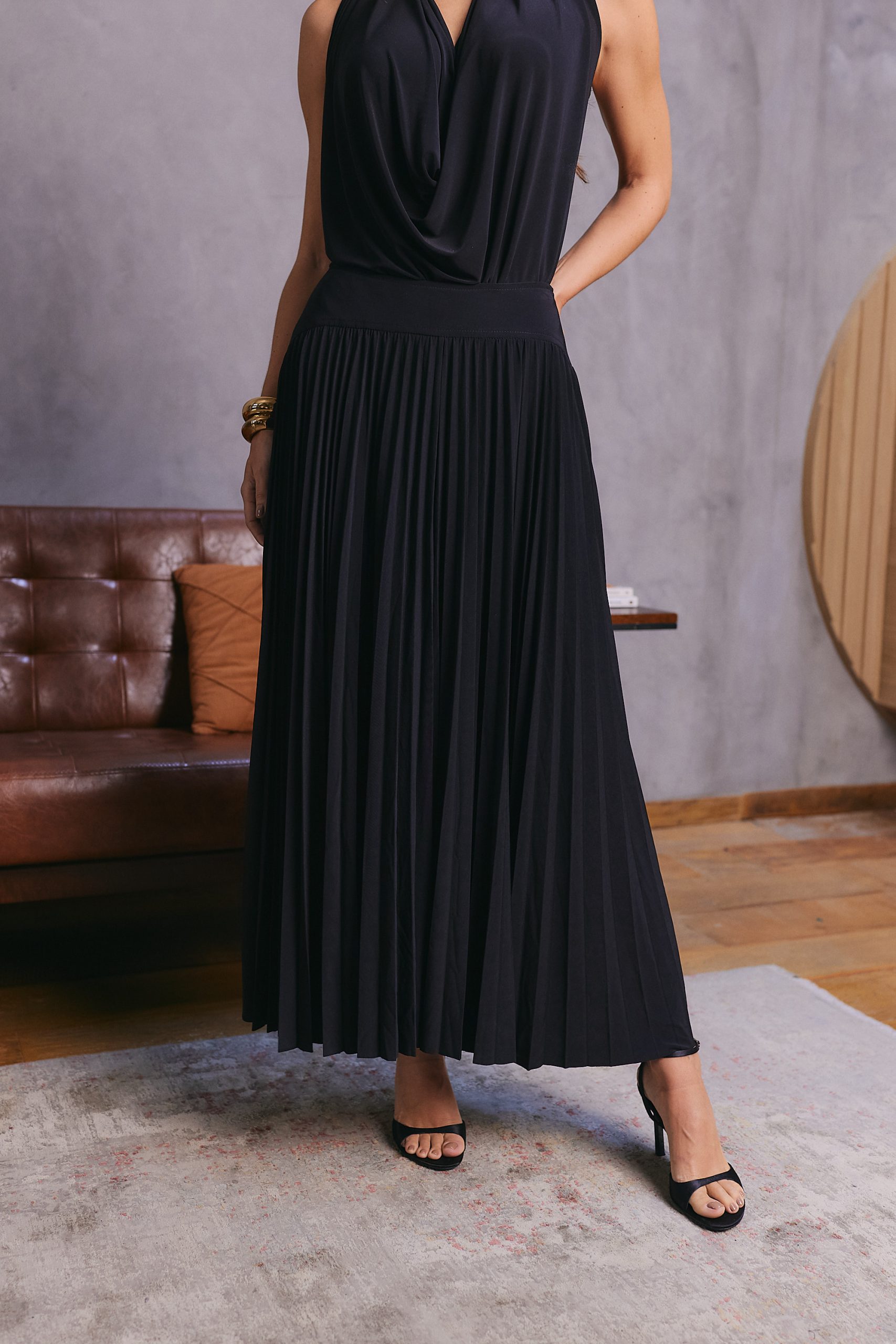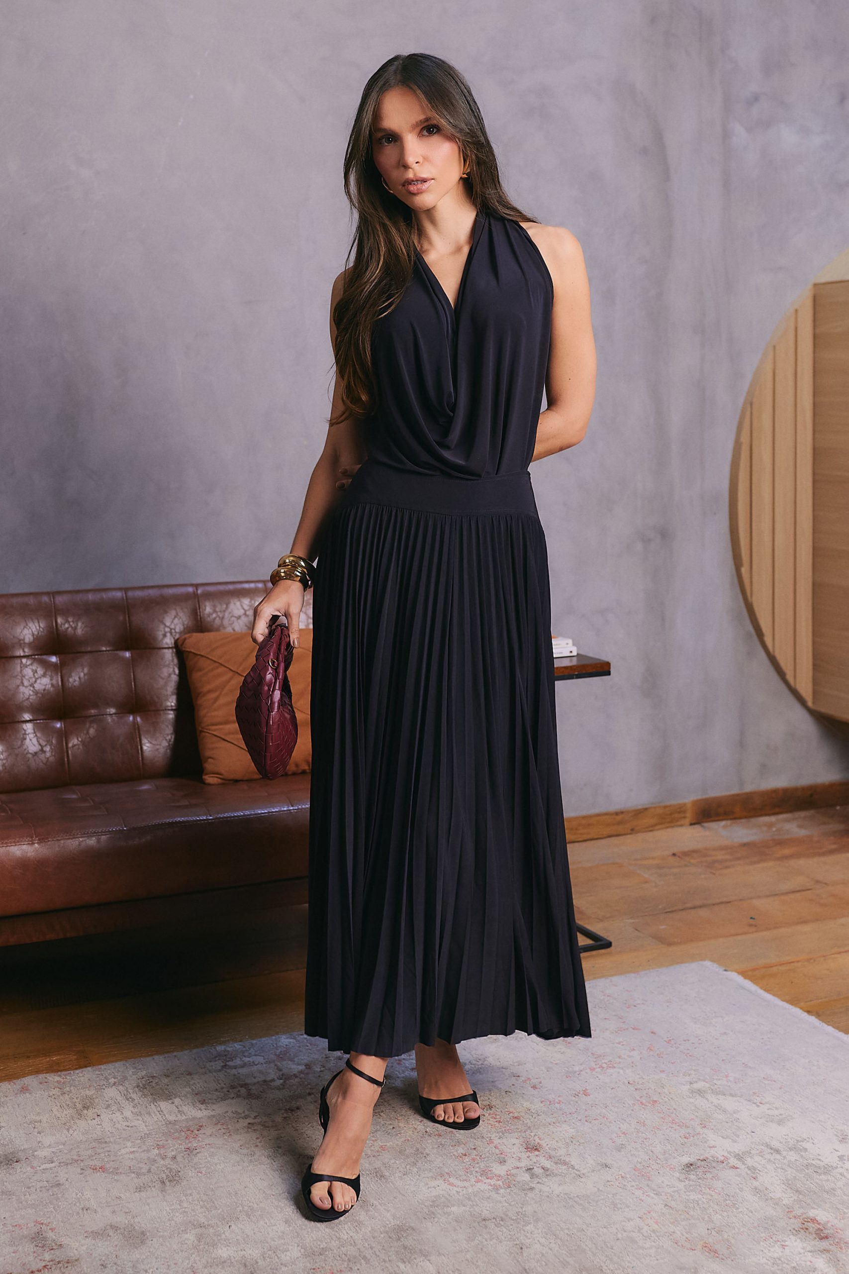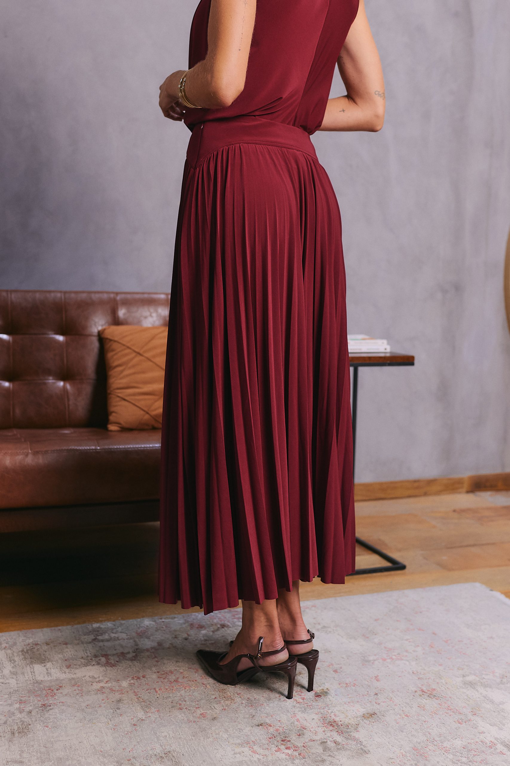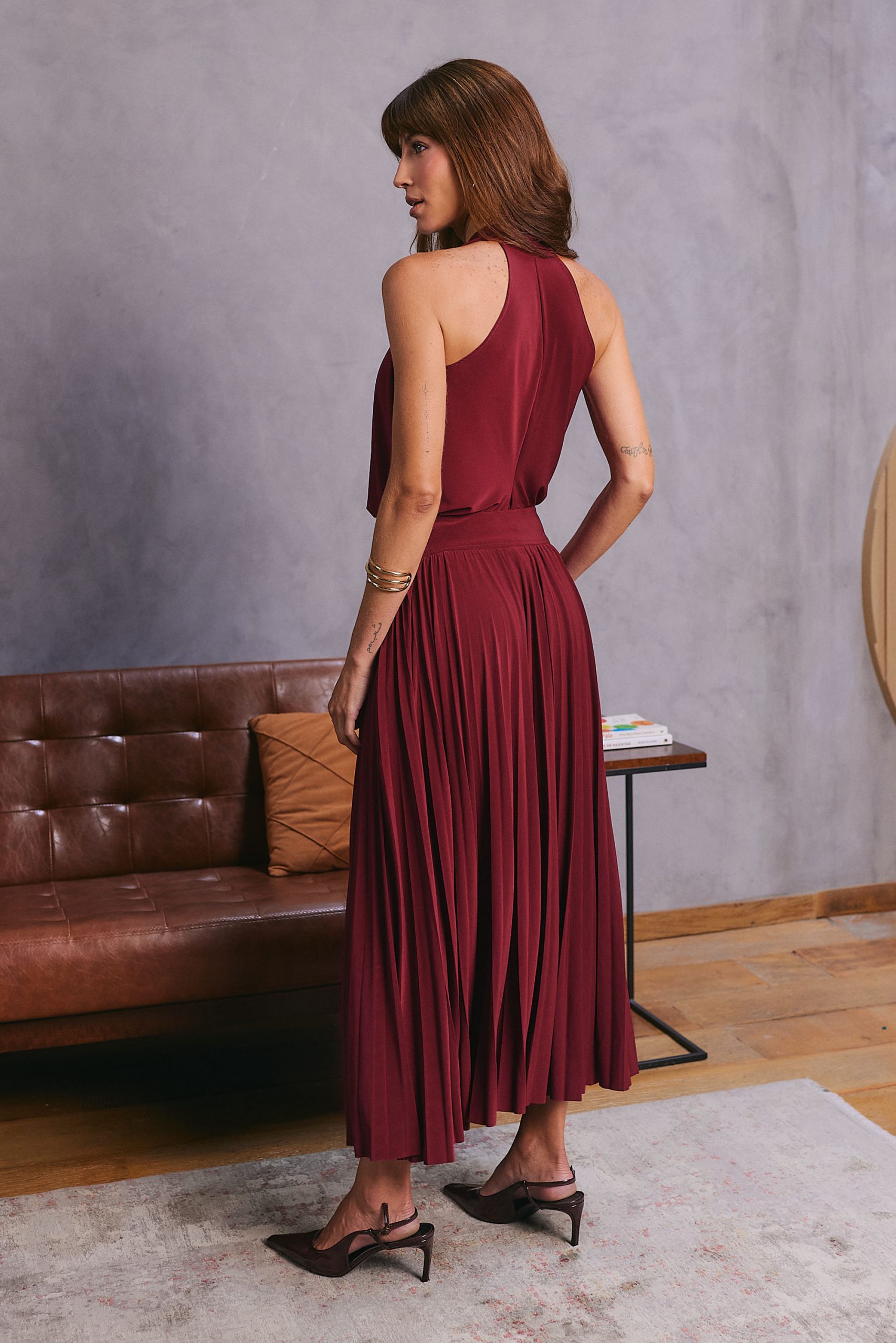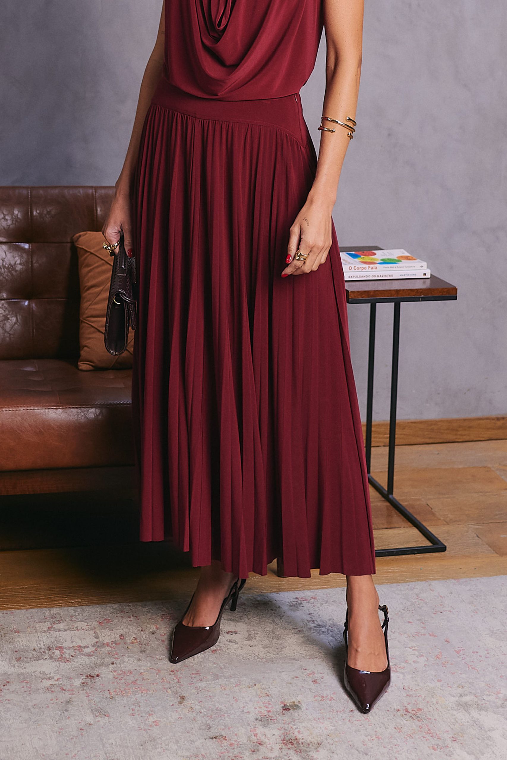 Saia confeccionada em malha jersey, com toque macio. Possui cós com recorte. O fechamento lateral é feito por zíper invisível, garantindo acabamento delicado. De comprimento midi, é uma peça atemporal e casual, perfeita para compor looks versáteis e modernos para diversas ocasiões.