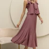 O fechamento por zíper invisível garante um acabamento limpo e discreto, valorizando ainda mais a silhueta com leveza.