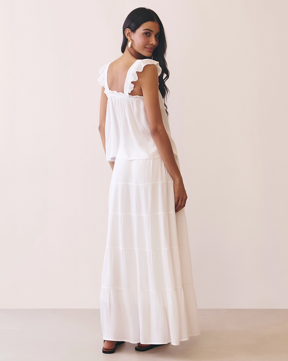 Ficha técnica: 100% viscose. Modelagem longa com recortes em três camadas e caimento fluido. Cor: off white. Origem: nacional. Cuidados: lavar à mão, secar à sombra e passar em temperatura baixa.