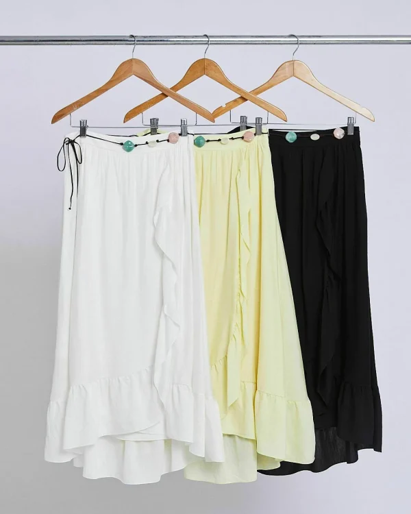 A saia viscose com babado kaele une frescor e sofisticação em um design minimalista que alonga a silhueta. O tecido leve tem toque macio e queda fluida, enquanto o babado sutil na barra adiciona balanço e romantismo. Assim, a peça funciona do passeio à noite com a mesma naturalidade.