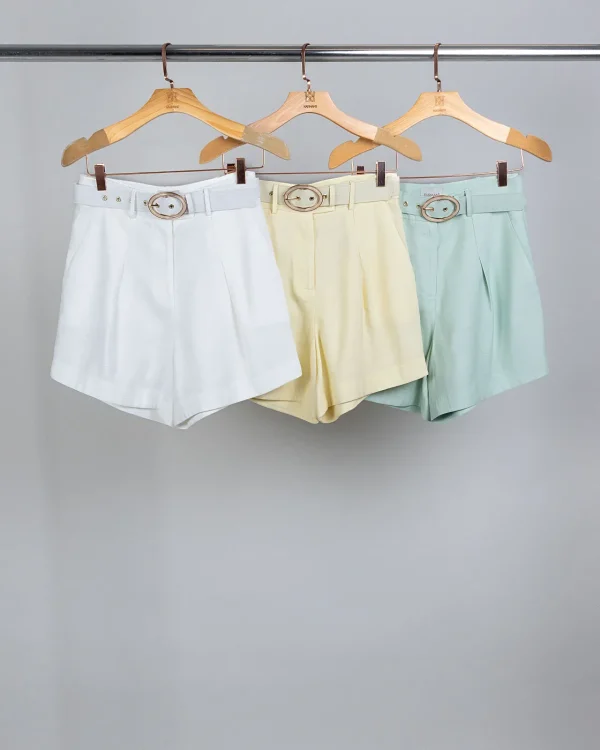 Esse shorts em alfaiataria de viscose é elegante e ao mesmo tempo super versátil. As pregas frontais trazem movimento e leveza, enquanto o cinto forrado com fivela resinada valoriza a cintura com um detalhe refinado. O tecido em viscose garante conforto e caimento perfeito, ideal para compor looks frescos e sofisticados nos dias quentes.