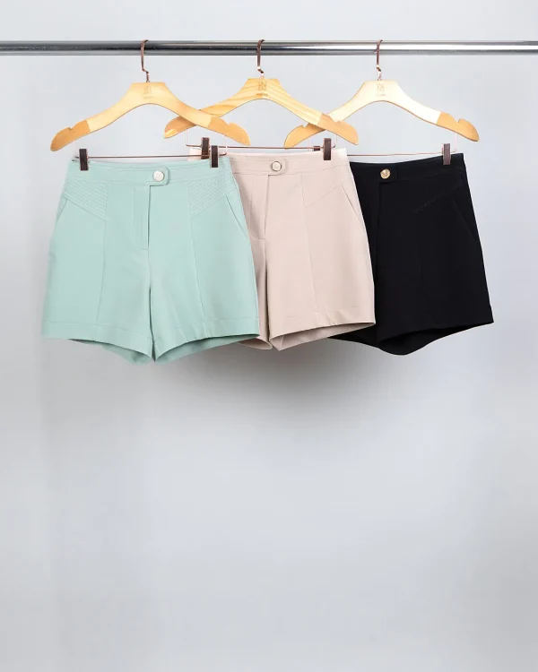 Esse shorts em alfaiataria é a definição de sofisticação descomplicada. O cós transpassado com botão traz um toque moderno, enquanto o recorte com pespontos dá acabamento refinado e valoriza a peça. Elegante e versátil, é perfeito para criar looks frescos que ainda mantêm a formalidade da alfaiataria.