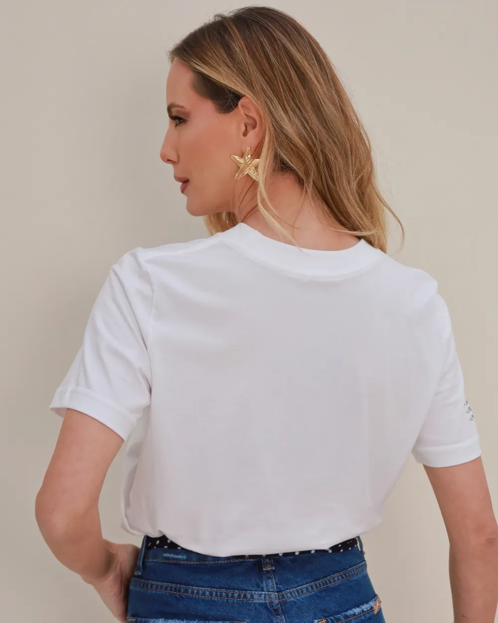 Por ser extremamente versátil, a t-shirt pode ser usada com calças jeans, saias ou shorts, garantindo conforto em qualquer momento. Por exemplo, combine-a com calça de alfaiataria e sandálias para um visual chic, ou aposte em tênis e peças leves para um look despojado. Assim, é possível adaptar a peça a todas as estações do ano com muito estilo e praticidade.