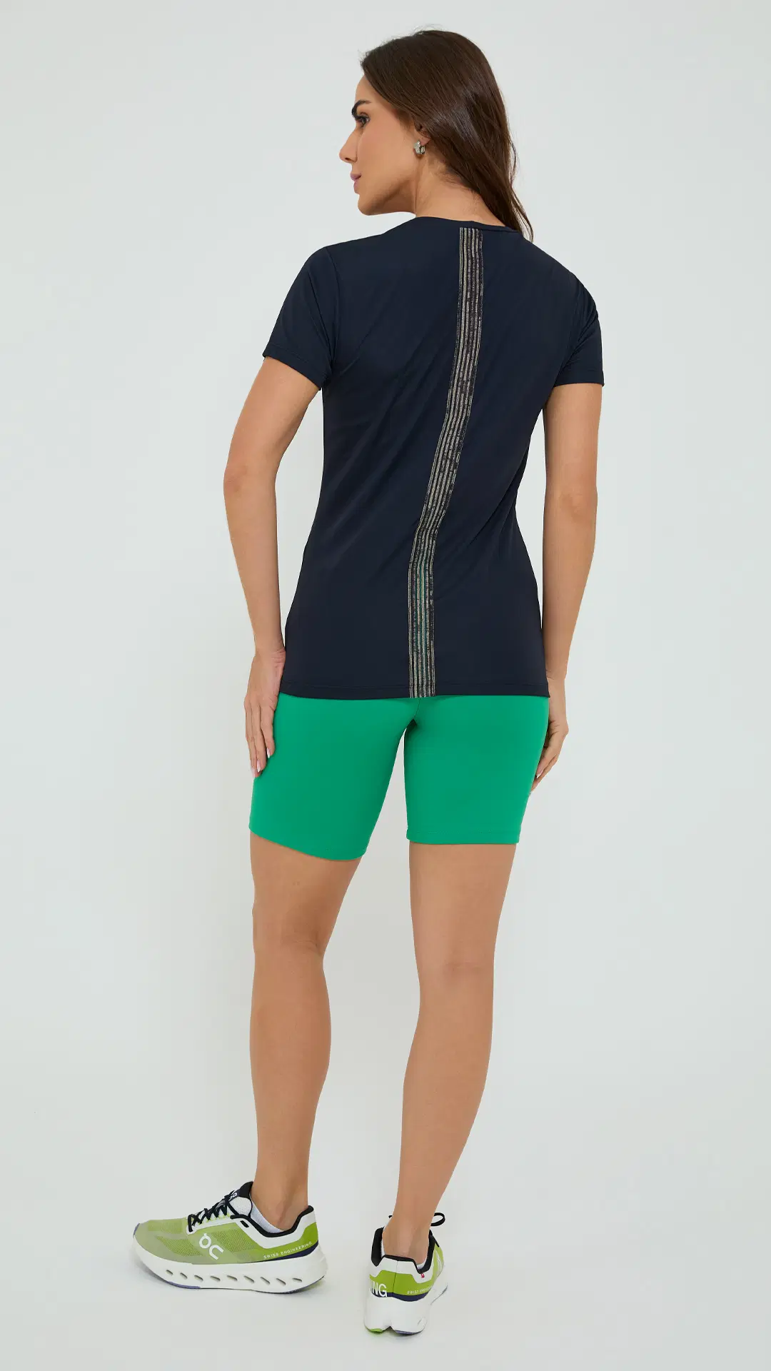 Dica de estilo: combine a T-shirt com Elástico nas Costas com uma legging de cós alto ou uma bermuda de compressão, criando um look fitness equilibrado, moderno e cheio de atitude — perfeito para treinos, caminhadas ou o pós-academia.
