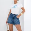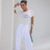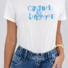 Camiseta em Tecido Leve com Bordado e Canutilhos – confeccionada em tecido macio e confortável (96% viscose, 4% elastano), com silk e bordado de linha com aplicação de canutilhos, que adicionam brilho sutil e sofisticação.