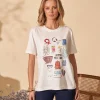 Camiseta com Estampa e Microesferas – confeccionada em 100% algodão, com toque macio e caimento confortável. Possui manga curta e estampa frontal com aplicação de microesferas, que traz delicadeza e um toque de brilho ao look.