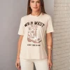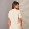 Malha macia, manga curta e caimento confortável. O silk frontal com floco, tacha e foil adiciona textura e brilho, deixando a peça moderna e cheia de estilo.