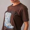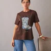 Confeccionada em malha macia, com manga curta e caimento confortável. O silk frontal combina floco, tacha e foil, criando textura e brilho para um visual moderno e cheio de personalidade.