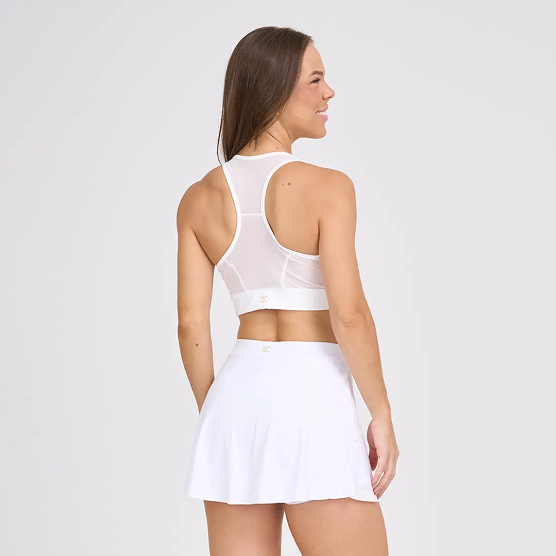 Dica de estilo: combine com uma saia-short em tom pastel e um tênis branco para um look esportivo refinado, perfeito para o tênis, beach tennis ou para um treino ao ar livre com elegância e conforto.