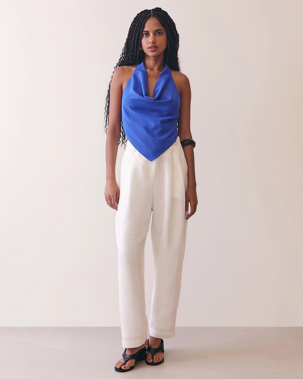 O top lenço fluido degagé é a perfeita tradução do frescor sofisticado que o verão pede. Seu tecido leve, em viscose com toque de poliamida, cria um caimento macio e acetinado que valoriza o decote degagé com elegância e sensualidade sutil. O formato em ponta na barra frontal alonga a silhueta e confere um ar contemporâneo, enquanto o tom de azul vibrante ilumina a pele e transmite confiança. Versátil e cheio de personalidade, é uma peça que transforma qualquer look simples em uma produção marcante e refinada.