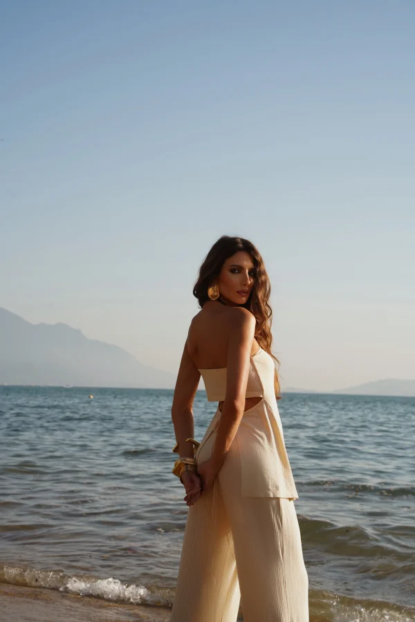 Com modelagem reta e alongada, cintura alta e shape fluido, valoriza sem marcar e garante movimento livre. Perfeita para dias ensolarados, passeios à beira-mar ou produções comfy-chic que pedem praticidade com estilo.
