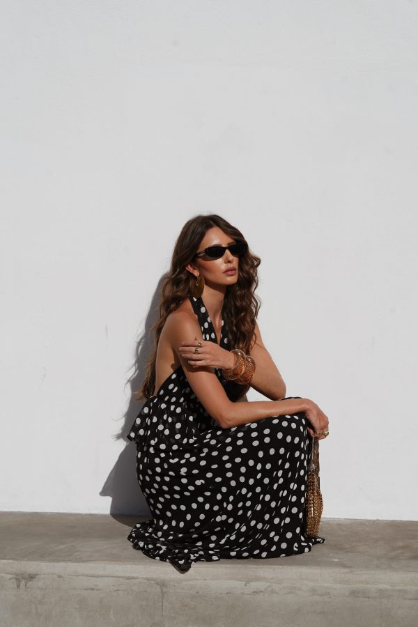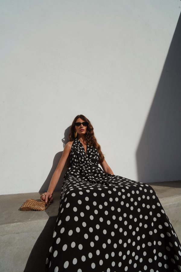 O Vestido Adriele é a tradução do frescor sofisticado que toda mulher moderna deseja ter no guarda-roupa. Feito em tecido leve e fluido, ele abraça o corpo com suavidade e proporciona movimento a cada passo, criando aquela sensação de leveza que acompanha o dia inteiro. O decote halter valoriza a linha dos ombros, trazendo uma elegância natural sem esforço, enquanto a cintura levemente marcada garante um caimento feminino e equilibrado. O fundo preto, contrastando com as estampas claras em poá, faz deste vestido uma peça atemporal, charmosa e versátil, perfeita tanto para um almoço casual quanto para um evento descontraído à noite. Seu comprimento longo transmite sofisticação imediata, sem perder a praticidade que a mulher contemporânea busca.
