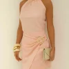 A alfaiataria em versão feminina e delicada. Esse vestido une linhas sofisticadas ao frescor de um design moderno. O decote franzido com amarração nas costas valoriza o colo de forma sutil, enquanto o detalhe de transpasse na saia com fivela rústica cria um ponto de destaque elegante, que desenha a silhueta e garante personalidade ao look. O tecido com toque estruturado e levemente elástico proporciona caimento impecável e conforto ao mesmo tempo.