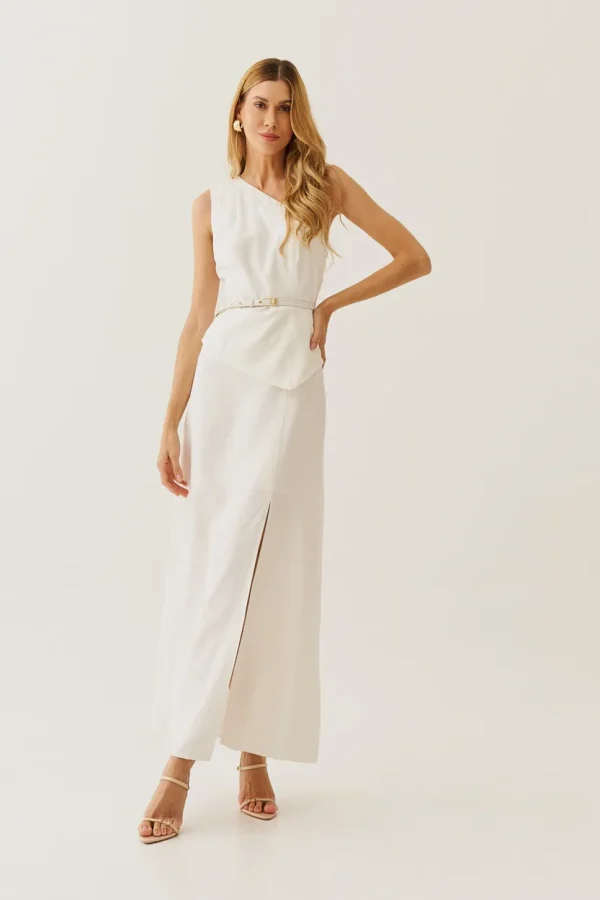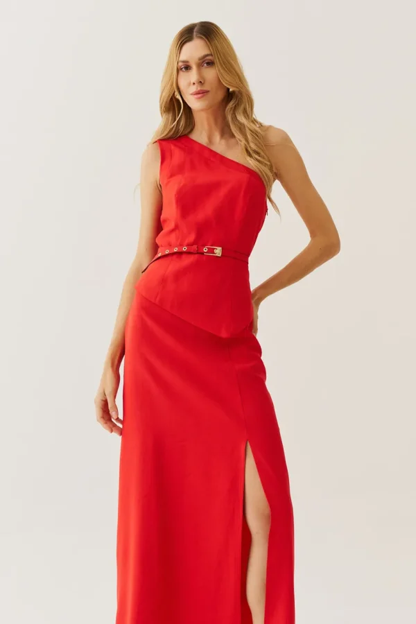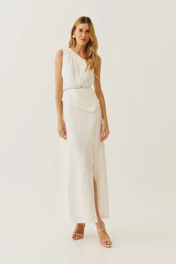 Impactante e sofisticado, esse vestido em alfaiataria de viscose é a escolha perfeita para quem quer unir presença e elegância. O design de um ombro só com sobreposição assimétrica cria um visual moderno e poderoso, enquanto o cinto marca a cintura na medida certa, valorizando a silhueta. O toque fluido da viscose traz leveza ao caimento, equilibrando força e feminilidade em uma peça só.