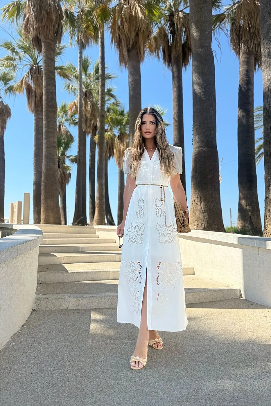 Como dica de estilo, use o vestido chemise bordado com um cinto de couro marcando a cintura e sandálias de salto bloco para um visual mais urbano e elegante, ou aberto como terceira peça sobre um vestido slip neutro para uma proposta moderna e inesperada.