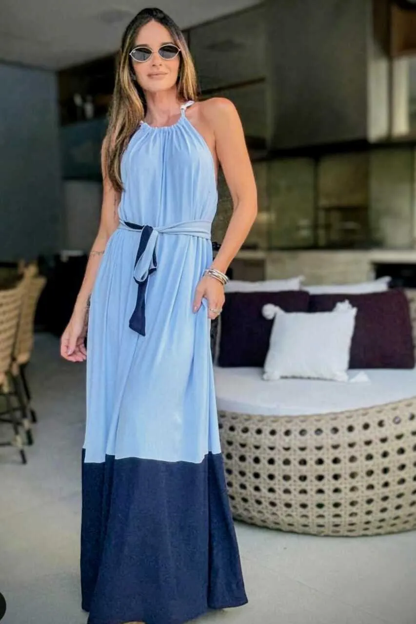 Leve, elegante e com uma sofisticação contemporânea que encanta ✨💙, esse vestido em crepe longo bicolor é a escolha perfeita para mulheres que buscam conforto, fluidez e um visual marcante sem excessos. Confeccionado em crepe, o tecido oferece caimento suave, toque agradável e movimento natural, acompanhando o corpo com delicadeza e elegância. A modelagem longa alonga a silhueta e garante presença, enquanto o design bicolor cria um contraste moderno e refinado, trazendo profundidade e personalidade ao visual. O decote delicado valoriza o colo de forma feminina, e a amarração na cintura ajuda a definir a silhueta com leveza, mantendo o equilíbrio entre conforto e elegância. É um vestido pensado para ocasiões especiais, eventos diurnos sofisticados, viagens ou momentos em que você deseja se sentir bem-vestida, segura e naturalmente elegante 👗✨.