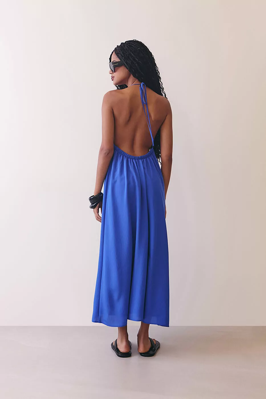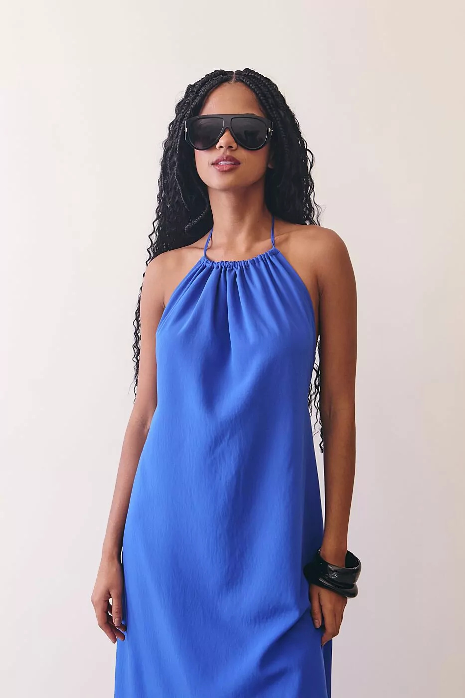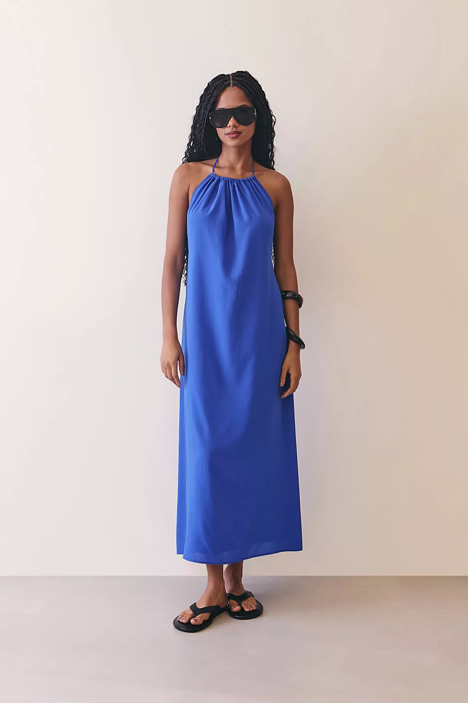 O vestido frente única é a tradução perfeita do verão sofisticado: leve, minimalista e naturalmente elegante. Feito em tecido fluido de toque macio, ele tem caimento solto e movimento sutil a cada passo, desenhando o corpo com leveza e conforto. O decote frente única valoriza os ombros e o colo de forma delicada e moderna, enquanto o comprimento longo alonga a silhueta e confere um ar de sofisticação despretensiosa. O tom de azul intenso traz frescor e personalidade, ideal para mulheres que gostam de peças simples, mas marcantes. É o tipo de vestido que vai do almoço à beira-mar ao jantar elegante, bastando mudar os acessórios.