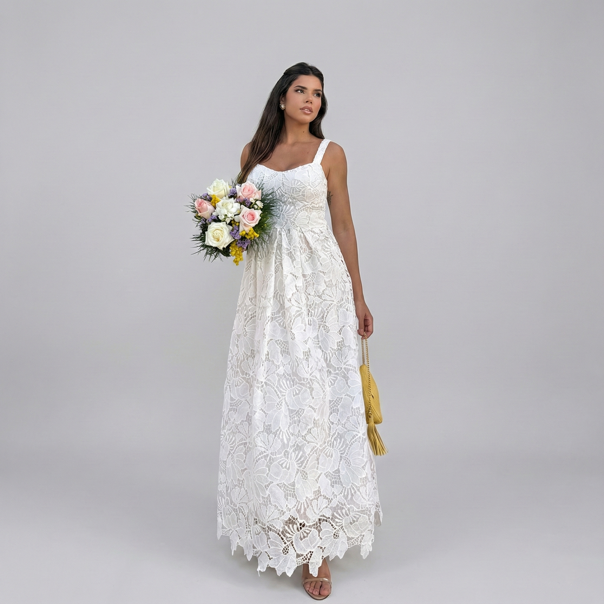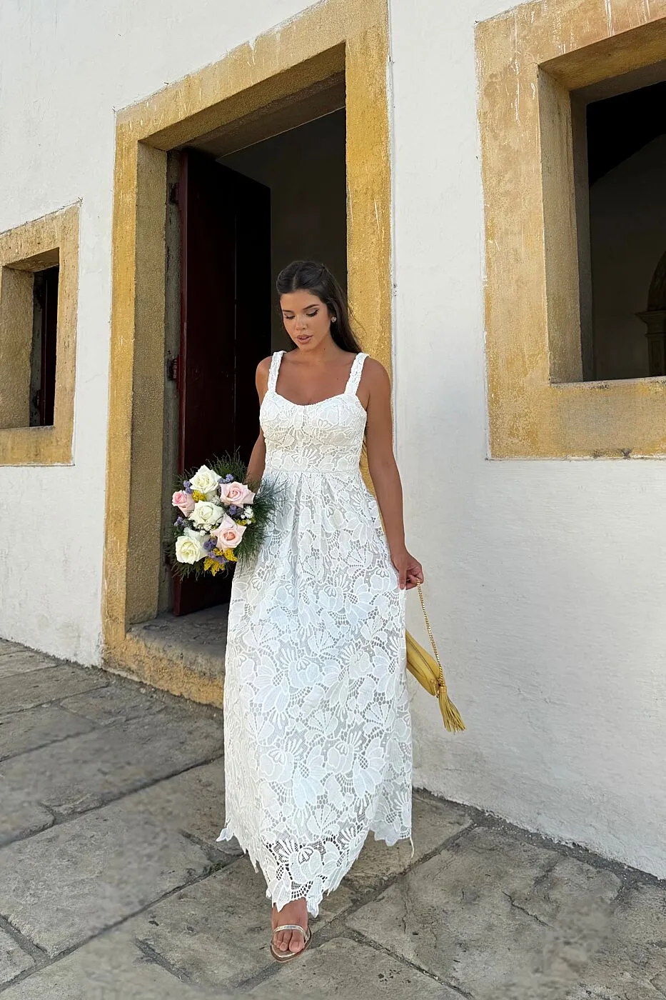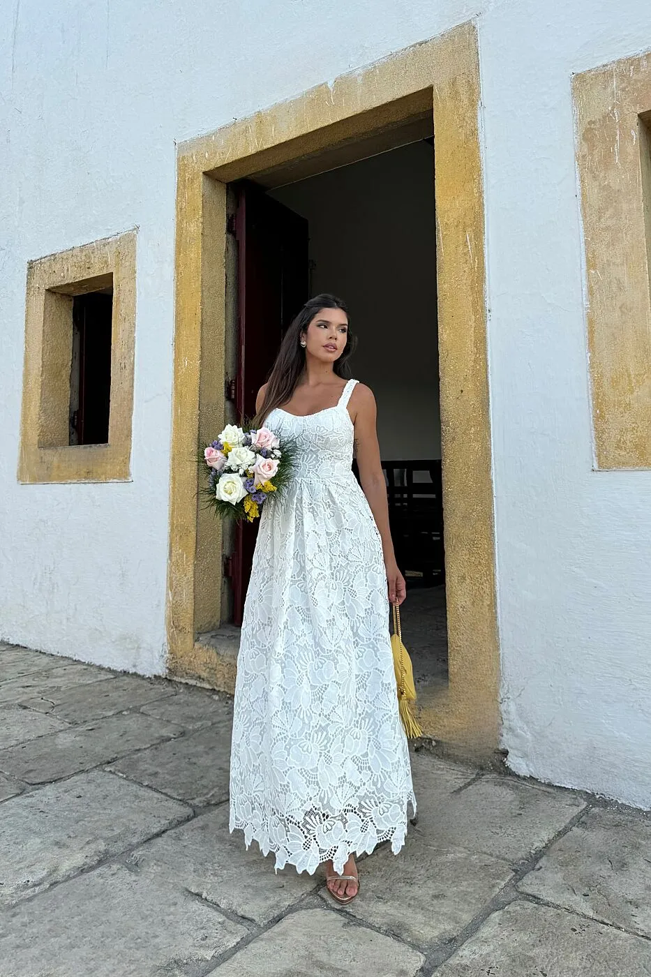 VESTIDO GUIPIR SAIA PREGAS