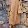 Tecido leve com toque macio e ótimo caimento. Costuras limpas, barra bem-feita e babado estruturado garantem acabamento polido em qualquer luz. Portanto, o resultado é sofisticado do início ao fim do dia.