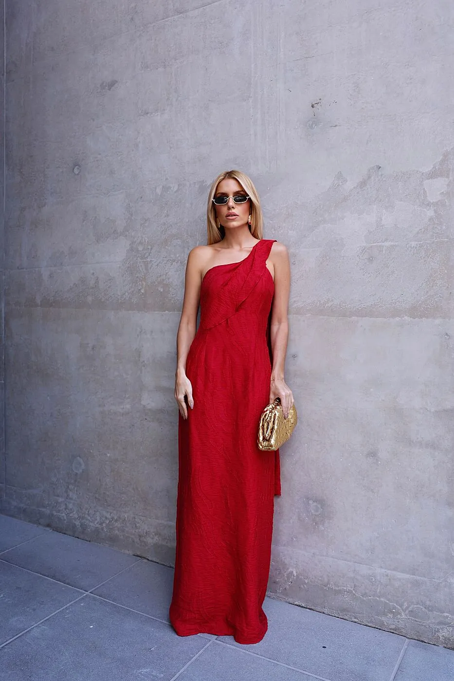 Imponente, sofisticado e absolutamente marcante ❤️ — o Vestido Longo Jacquard Um Ombro Só com Detalhe Transpassado é a escolha perfeita para quem busca elegância e presença em uma única peça. Confeccionado em jacquard de viscose e linho, o modelo apresenta textura refinada e um caimento estruturado que valoriza a silhueta com sutileza. O design de um ombro só adiciona um toque moderno e sensual, enquanto o detalhe de tecido transpassado na parte frontal cria um efeito escultural e elegante. O tom vermelho vibrante transmite força, confiança e sofisticação — ideal para eventos noturnos, casamentos ou celebrações em que o dress code pede destaque ✨.