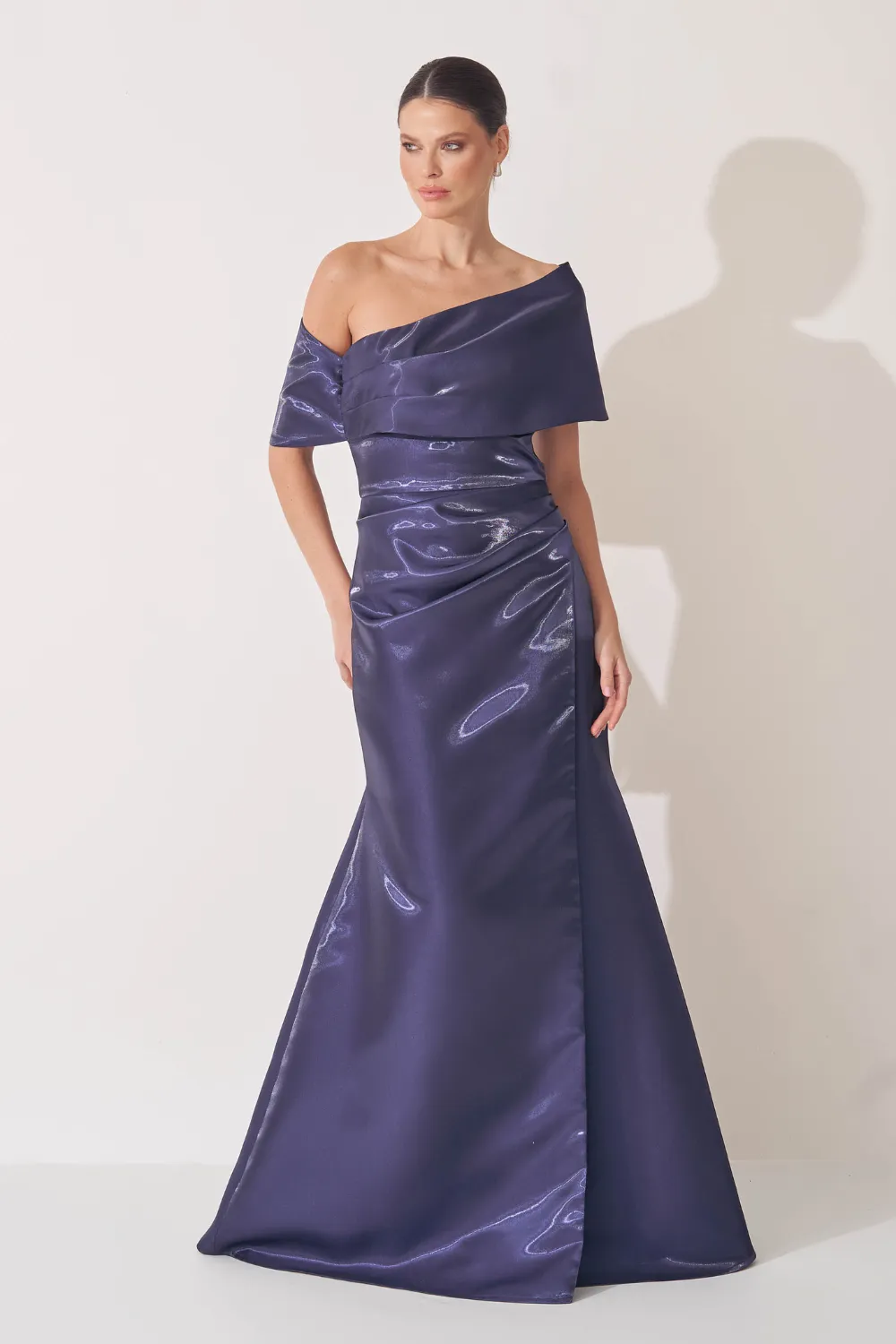 O Vestido Longo Beatrice é uma celebração da elegância escultural, pensado para mulheres que desejam uma presença marcante e sofisticada. Confeccionado em zibeline 100% poliéster, ele se destaca pelo brilho acetinado discreto e pela estrutura impecável do tecido, que valoriza o corpo com firmeza e fluidez na medida certa. O decote assimétrico é o ponto de destaque da peça, enriquecido por uma pala sobreposta que percorre a frente e as costas, formando uma manga única com pregas sutis — um detalhe de construção que confere movimento, modernidade e um toque de alta-costura ao visual. O resultado é um vestido de presença forte, ideal para eventos noturnos, casamentos e ocasiões em que a sofisticação deve ser protagonista.