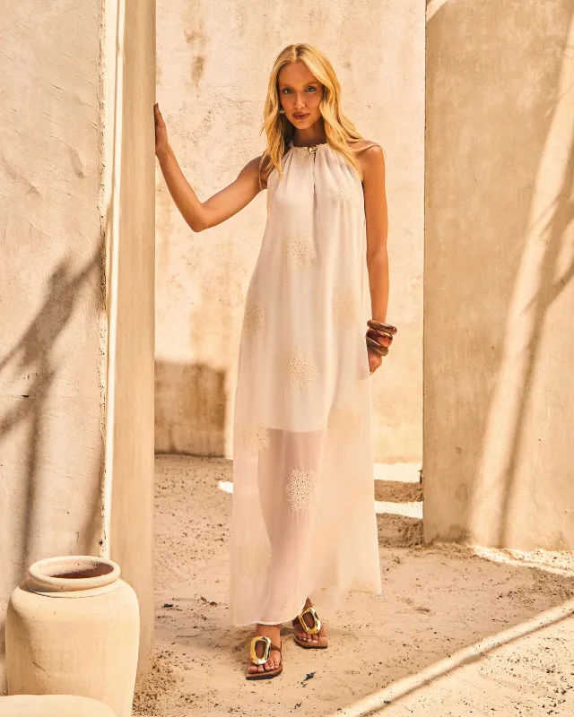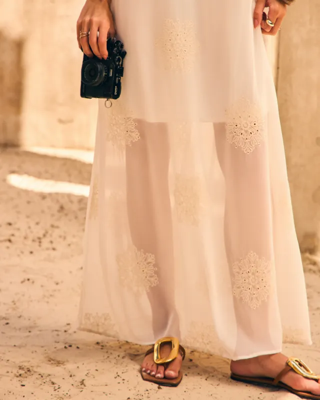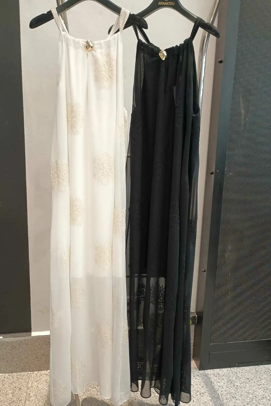 Dica de estilo 💡: use esse vestido longo feminino bordado com sandálias delicadas ou rasteiras sofisticadas e acessórios em tons naturais para o dia; à noite, eleve a produção com brincos dourados e clutch minimalista para um visual chic e refinado.