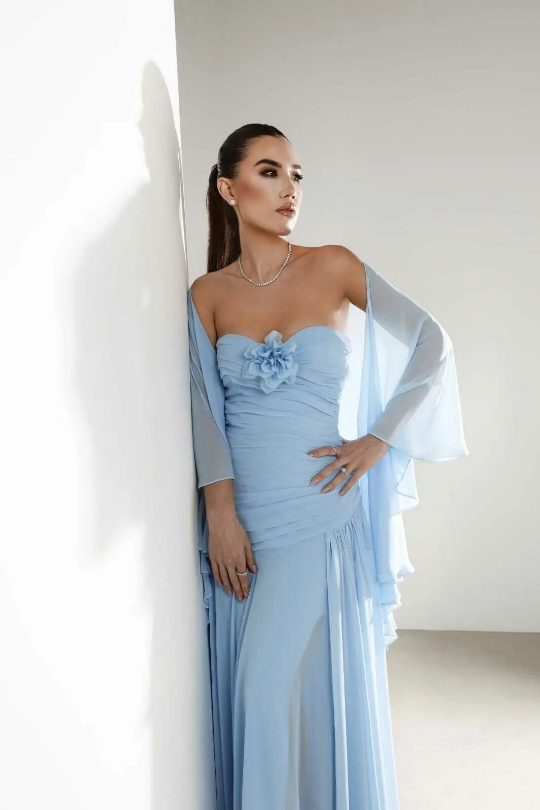 O Vestido Longo Clarissa é a perfeita tradução da elegância delicada e atemporal. Confeccionado em chiffon leve e fluido, ele encanta pelo movimento suave e pelo caimento impecável, que envolve a silhueta com naturalidade. O decote sem alças, em modelo transpassado e franzido, destaca o colo com feminilidade e sofisticação, criando um efeito visual harmonioso e envolvente. O recorte diagonal que se estende do busto à cintura valoriza o corpo com sutileza, conferindo um toque moderno à composição. A saia longa, fluida e levemente esvoaçante, completa o visual com graciosidade e leveza, tornando o Vestido Clarissa ideal para casamentos, formaturas e eventos que pedem sofisticação em cada detalhe.