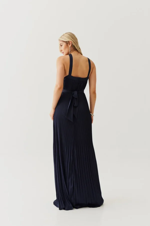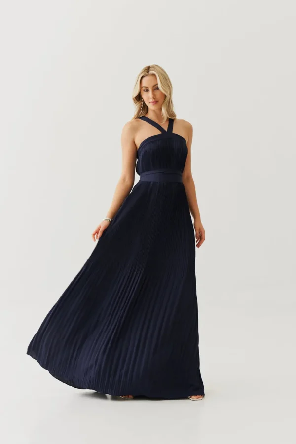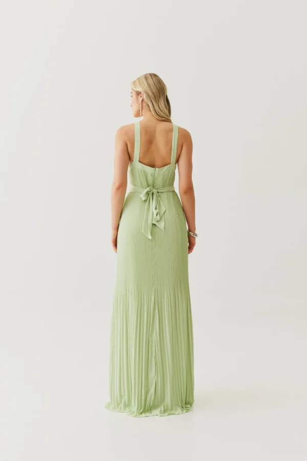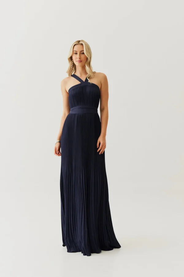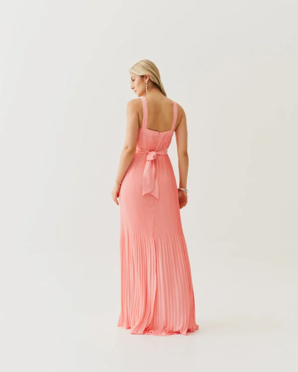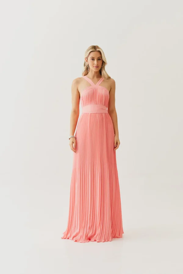 Um vestido que é pura poesia em movimento. O crepe plissado cria uma fluidez delicada, que acompanha o corpo de forma leve e sofisticada. A frente única com alça larga traz modernidade e segurança, enquanto a faixa que acompanha a peça permite brincar com diferentes formas de marcar a cintura ou até usar solto para um visual mais despojado. É aquele vestido que une frescor, elegância e versatilidade em um só.