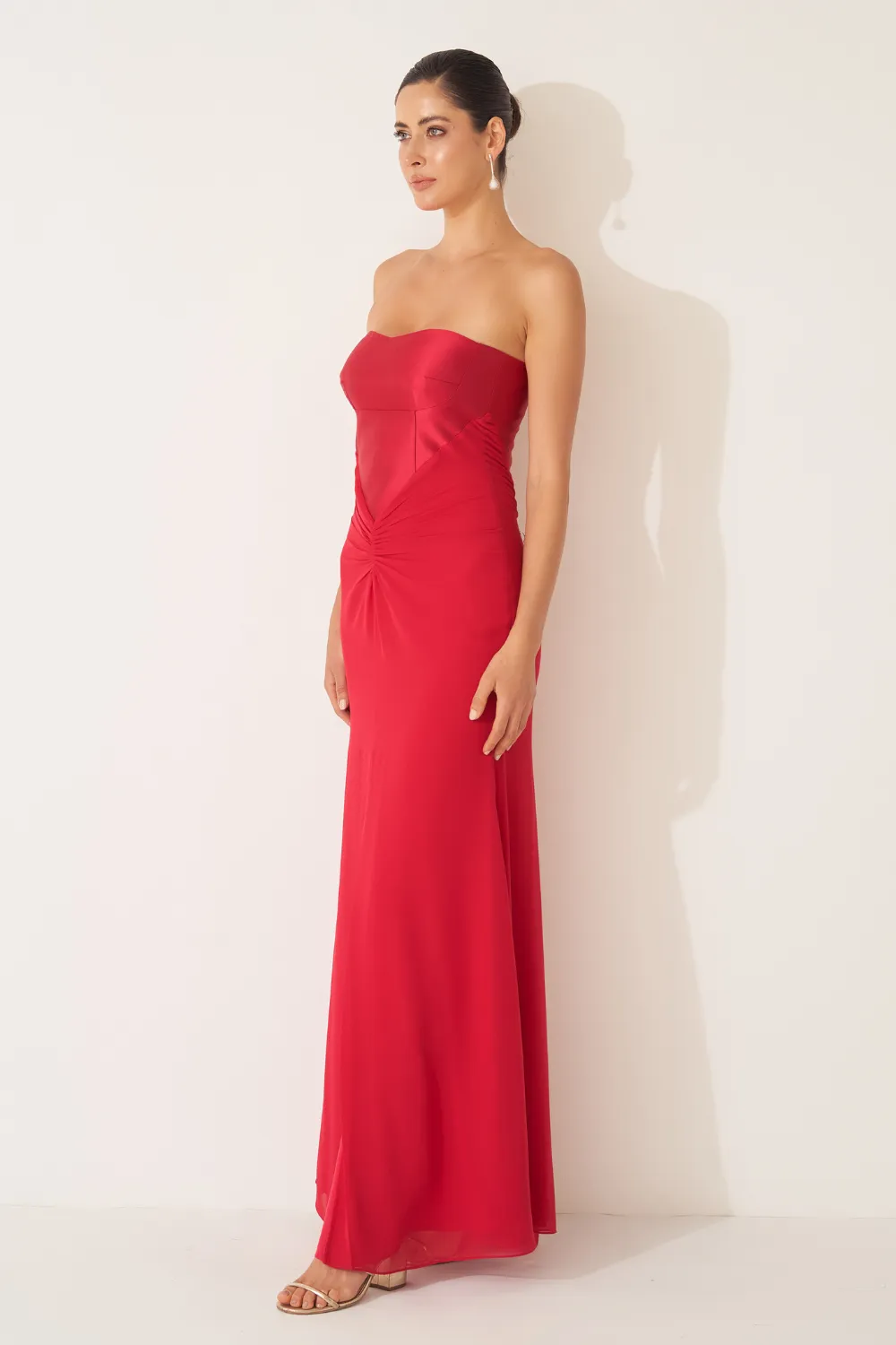 Dica de estilo: combine o Vestido Longo Zoe com sandálias de salto fino e acessórios dourados delicados para realçar a sofisticação do look, ou adicione uma clutch de tom contrastante e brincos longos para um toque contemporâneo e glamouroso.