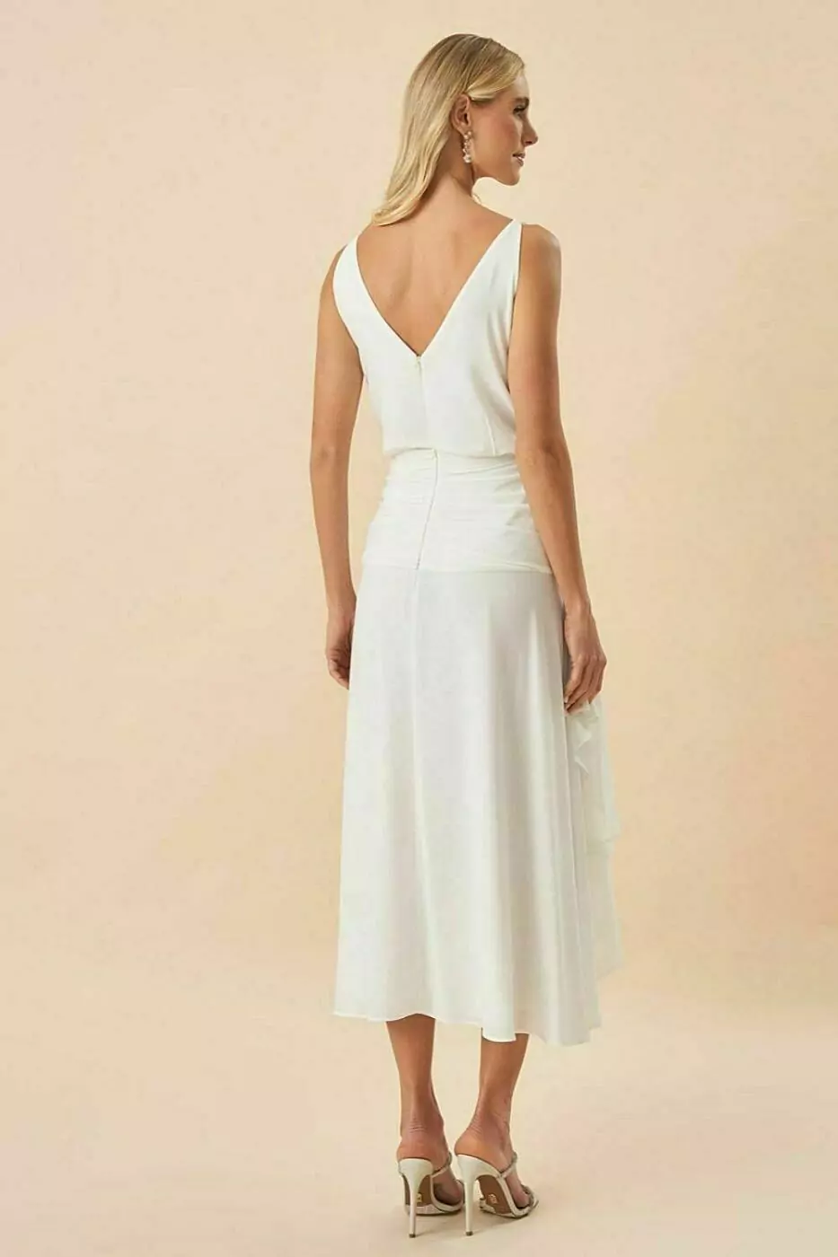 Dica de estilo: combine o Vestido Isis com sandálias de salto fino e acessórios dourados para um visual elegante e atemporal. Para um toque mais contemporâneo, aposte em uma jaqueta leve e clutch metalizada — o equilíbrio perfeito entre casual e sofisticado.