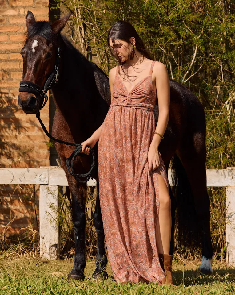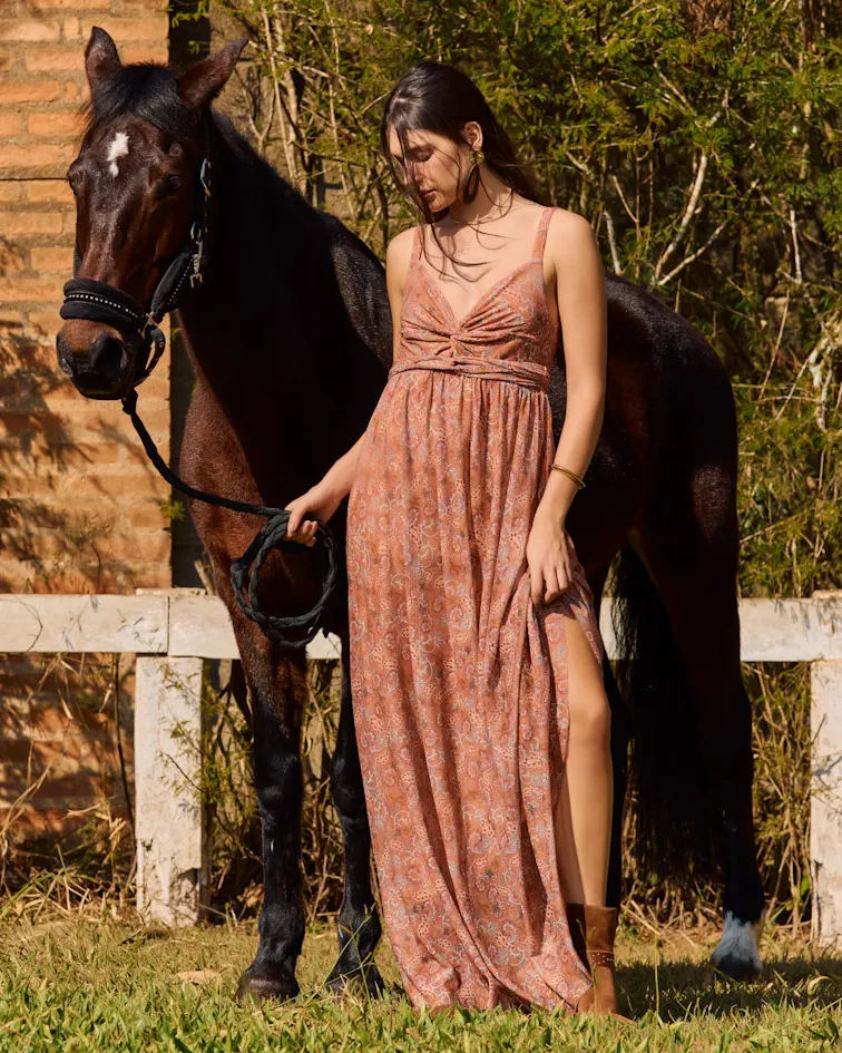 Um vestido encantador que traduz liberdade, leveza e sofisticação natural! 🌾
