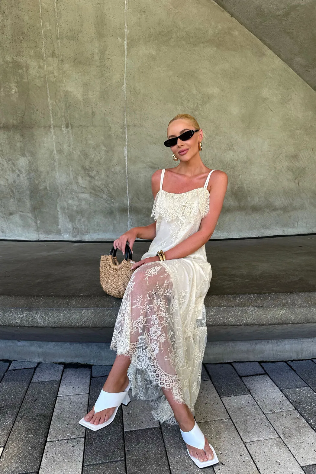 Ficha técnica: confeccionado em renda de toque macio e acabamento delicado, possui babados assimétricos que valorizam o design e o movimento da peça, conta com forro interno para maior conforto e segurança, modelagem longa com caimento fluido, cor off-white, peça de origem nacional, recomenda-se lavar à mão com sabão neutro, não torcer, não usar alvejante e secar à sombra para preservar a delicadeza do vestido feminino sofisticado.