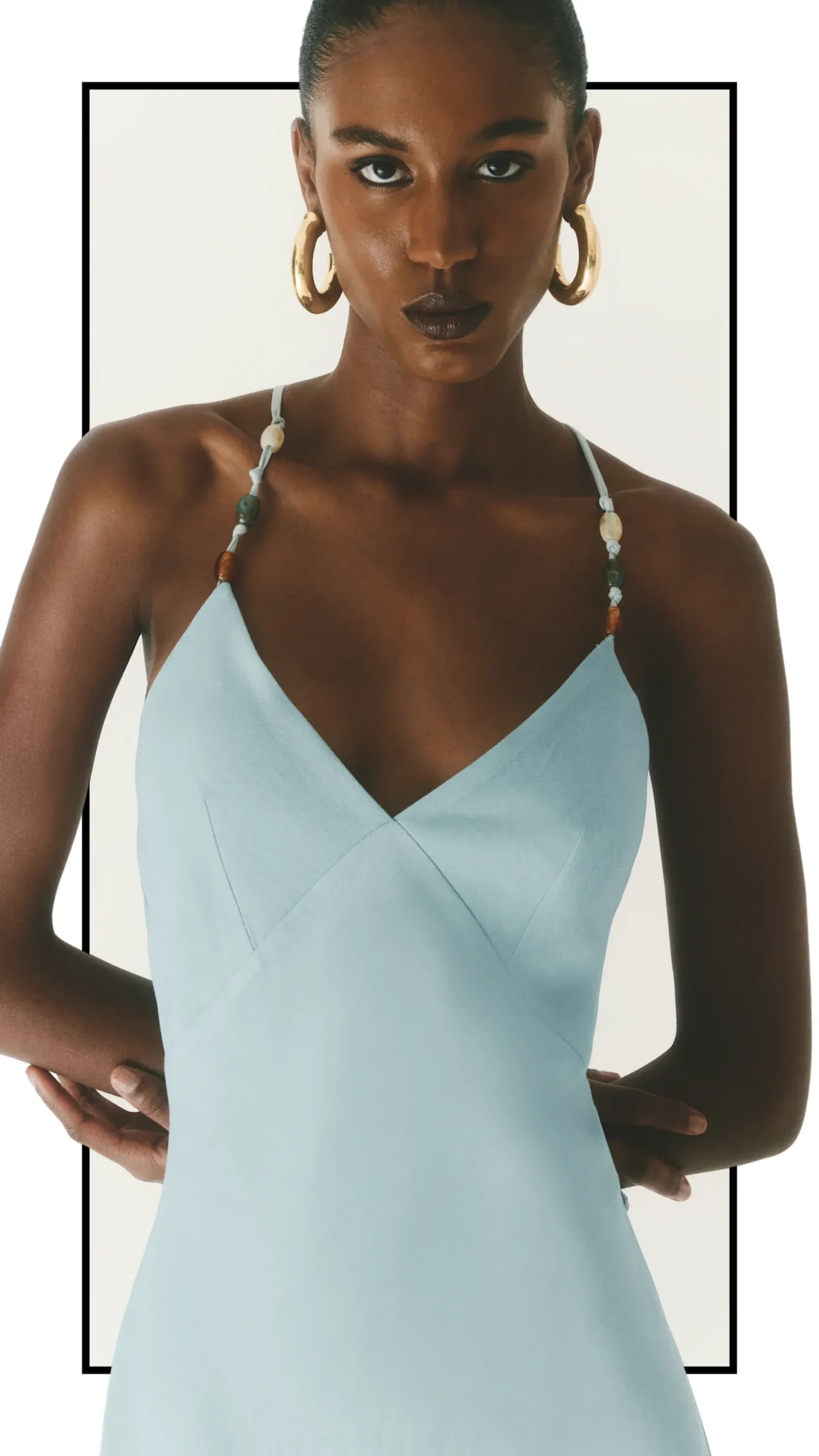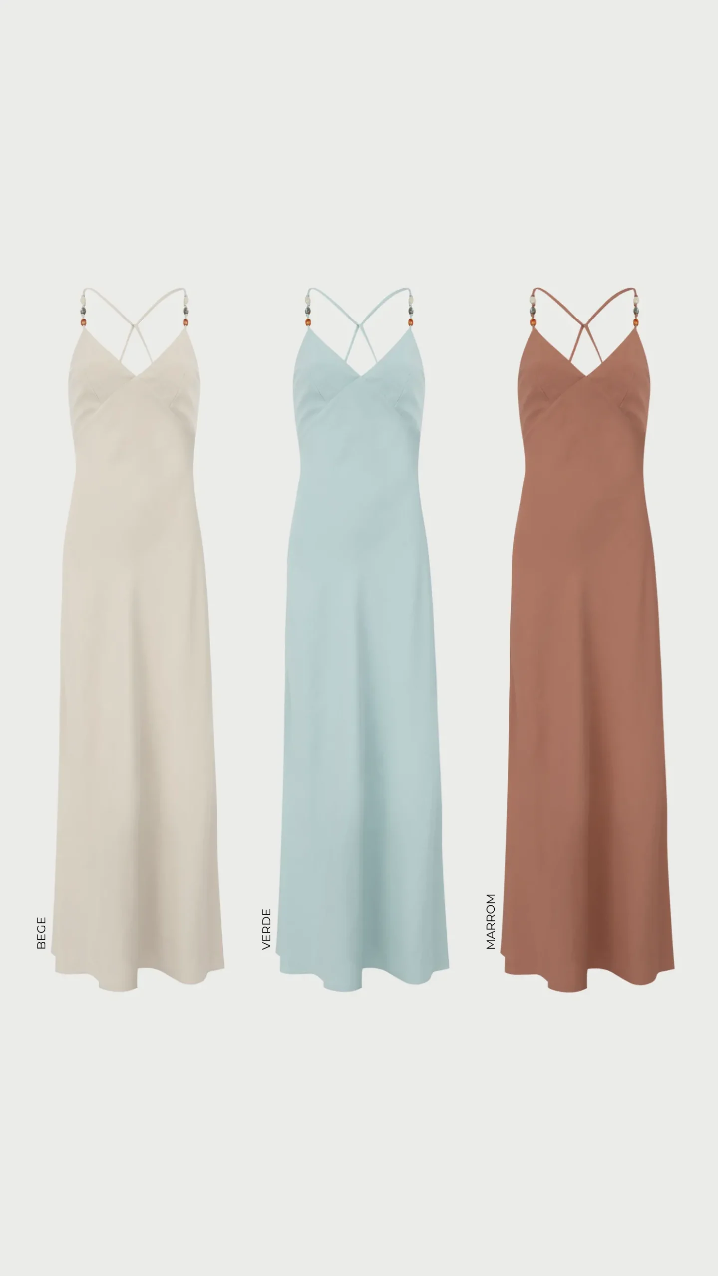 Dica de estilo: para uma proposta diferente, combine o slip dress com uma terceira peça estruturada, como um blazer off-white, e finalize com sandálias metalizadas; o contraste entre a fluidez da viscose e a alfaiataria cria um look sofisticado e atual.