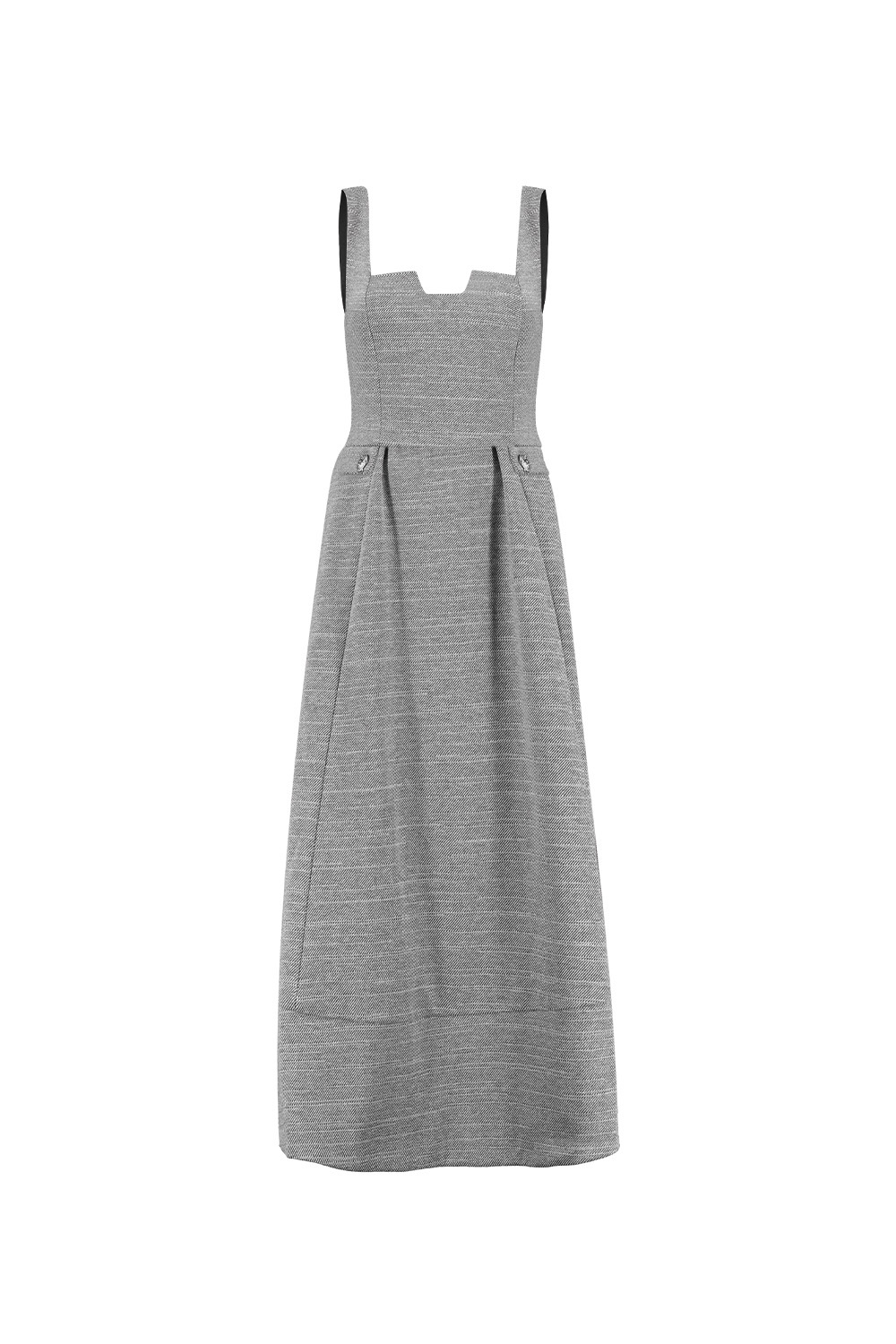 Ficha técnica: vestido longo feminino confeccionado em tecido encorpado de alfaiataria com acabamento sofisticado, sem forro, modelagem longa com recorte na cintura e alças médias, caimento fluido e estruturado, cor neutra e atemporal, origem nacional, cuidados de lavagem recomendados a seco ou lavagem delicada conforme instruções da etiqueta. 🧺✨